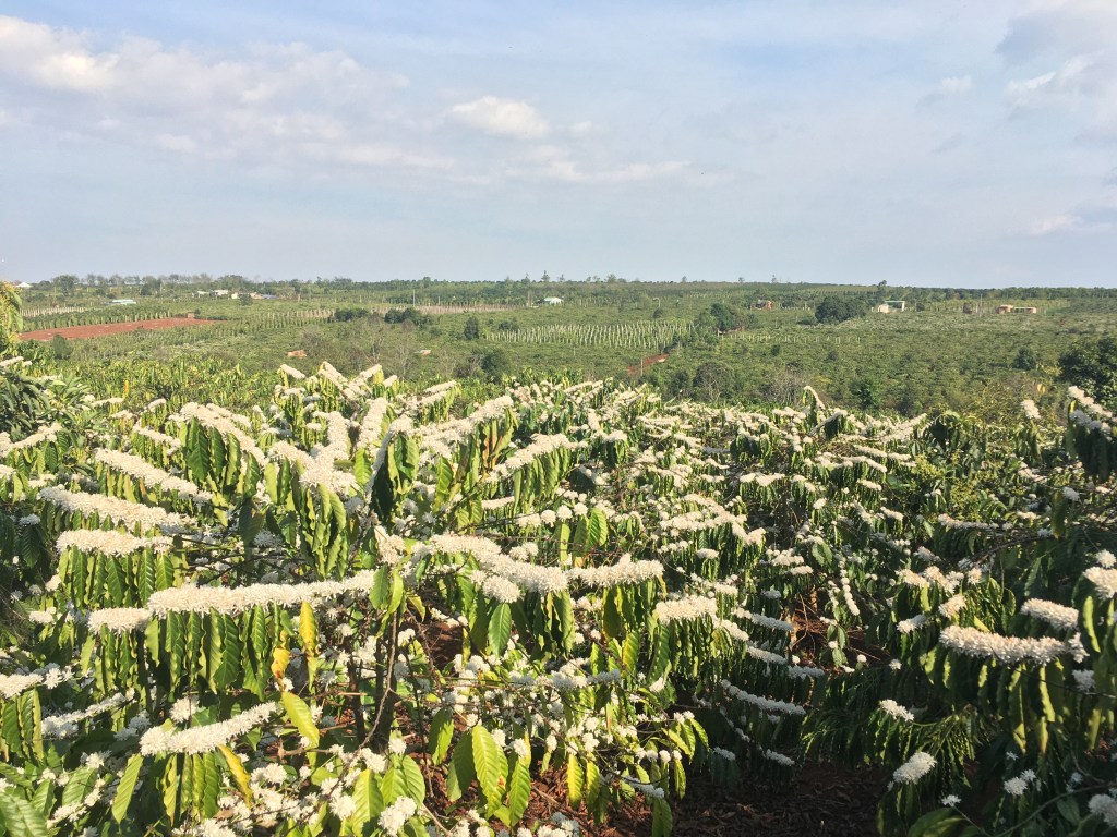 Năm mới bắt đầu khi những chùm hoa cà phê trắng muốt nở rộ khắp cao nguyên đất đỏ. Những người nông dân bận rộn quanh năm: tưới cây, đào bồn, cắt cành, làm chồi, làm cỏ, bón phân…