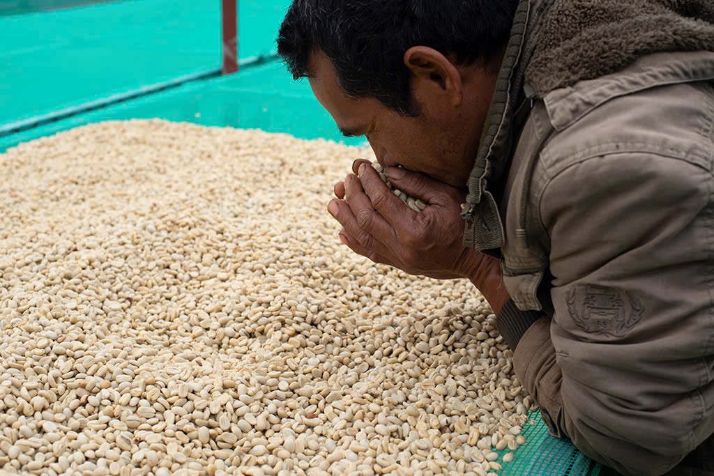 Đông về là lúc những trái cà phê chín đỏ trên cành. Đây là khoảng thời gian đẹp nhất trong năm. Bầu trời cao và trong, nắng rực rỡ trong không khí se lạnh và khô ráo, hoa dã quỳ màu vàng, hoa xuyến chi màu trắng, cả miền cao nguyên như reo vui mừng cà phê chín. Mùa thu hoạch, một bầu không khí náo nức, phấn khởi và vui vẻ len lỏi giữa những người nông dân bởi công sức lao động trong suốt một năm trời cuối cùng cũng sắp được đền đáp. Phương pháp chế biến phổ biến nhất là phơi khô tự nhiên (natural). Cà phê sau khi thu hái được phơi dưới nắng. Giữa một vùng nông nghiệp rộng lớn, những sân phơi đầy ắp cà phê. Mọi người dựng lều tạm để trông coi những mẻ cà lớn nằm phơi phóng giữa trời.